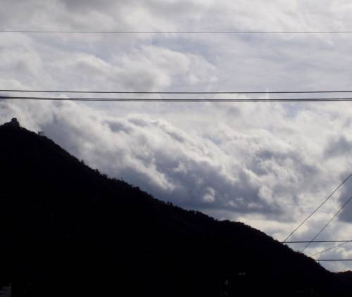 雷鳴のなかの夜の散歩・・ほんの少しの雲の切れ間の月。