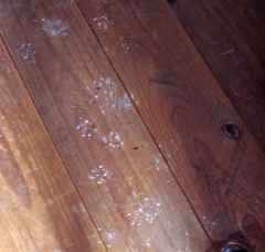 キッチンの窓 夜のやもりくんと昼のるこう草 ・クリックでイミなく大きくご覧いただけます。