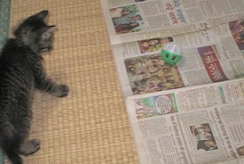 階段途中にしかけてあったぺったんタイプのネズミ捕りに捕獲され、そのまま転落。