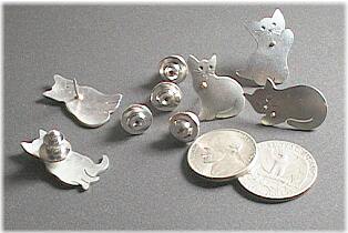 ◇タイニーピン 共通の仕様 約2cm×2.5cmの長方形におさまります。 本体の材質 洋白、真ちゅう(鈴の部分) 小さいけれどヒゲも生えて鈴もつけています。 ワンポイントのアクセサリーとしてお使いください。 ( 鈴は真ちゅうの粒で、本物の鈴ではありません。) すべて裏側からの打ち出しにより 軽いふくらみが つけてあります。
