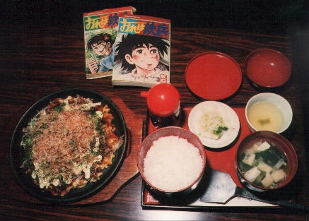 粉モノのお好み焼きとごはんをいっしょに食べるのは