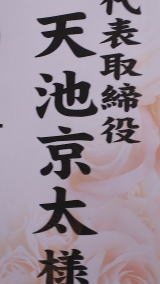 関係会社から多くお祝いのお花を頂き、感謝であります。今の2021年7月になる時でも事務所にてお花が咲いております。天池京太氏は我が弟でありますが、社長としての責務と人々の生活の糧を守り、地域活性化や社会貢献の為更には本社ホームページに記載してありますが、野球の「バント」の心で証をしております。
