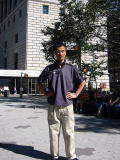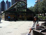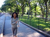 9時前に部屋を出てまずはセントラルパークへ。セントラルパークの南の入口へはホテルから歩いても5分ちょっと。智子は走る気満々!?で、ボストン郊外のショッピングモールで購入したランニングシューズを履いてお出掛け。