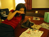 何故か地図が茶色く汚れていました。あれ!?そういえば、さっきお土産を買う時に試食用にもらったチョコレートを智子のバッグに入れていたのを忘れていました。地図だけでなくて智子のバッグとストールまでチョコ色に染まってしまいました。