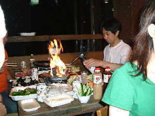 | 毎年恒例の「箱根強化合宿」が開催されました。 今年の参加者は、大人:15人、子供:3人です。 雨が降るのでは?と心配されましたが、なんとか雨も降らなかったのは、皆さんの普段の行いが良いからでしょうか? いつも買い出しをしているブー氏さんが、今回買い出しできないということで、私とVTECが買い出しをしてから現地に向かいました。肉、野菜、ソフトドリンク・・・の荷物で車内満載です。高速道路で加速しようにもなかなか加速しない。もう少しトルク欲しいなぁ。 御殿場I.C.で会長と合流。ビール以外のアルコール飲料を購入し、いつもの芦ノ湖キャンプ場に向かいます。 キャンプ場について、早速荷物の運び出し、BBQの準備をします。しばらくすると、メンバーが集まってきました。 今回は乾杯の前に全員集合!さっそく肉などを焼き始めます。隣を見ると、中山さんが「ファイヤー!」してます。(^^; これ、毎年恒例ですね。 今回はいつもより1ヶ月遅く開催されたのですが、気温も下がらず、ビールをぐいぐい飲めます。ちと、飲み過ぎかも? BBQが一通り終わった後は、ロッジでDVD鑑賞&歓談です。 朝は、親方ラーメンとブー氏さんのモーニングセットとなりました。 ちょっと今回は食材の量が多すぎましたね。次回は年齢の補正係数をかけた方がいいかもしれません。 リバース組は山登り、CYBER組は現地解散となりました。 お疲れ様でした。 |