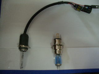 ハロゲンのバルブとHIDのバルブの比較です。 |