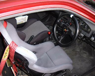 | コメント | お金のかからないモータースポーツをはじめたつもりが、今ではこんなに。来年のJAFの新規定で内張りの撤去が禁止になるので、リアまわりの内張りははずせなかった。エアコンのスイッチはありますが、コンプレッサーが無いので、エアコンは無いです。ちなみに、ボンネットは車体同色ですが、WinSports製のFRPです。何で塗ったかは秘密です。 |