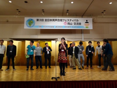 東京より北が6団体、南が19団体、主催県岡山が7団体、四国九州はそれぞれ1団体と、分布バランスがいまいちの状況でした。もう37回を数える 「全日本おかあさんコーラス大会」 のように、県大会⇒支部大会⇒全国大会という選抜の流れがあればそれなりに地域のバランスもとれますが、男声合唱は残念ながらまだそこまでいっていません。それでもようやく2015年からは毎年開催に変わりますので、流れが変わることも期待されます。