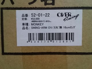 特価 新品パーツ モンキー用 OVER Raching スイングアーム OVタイプ スタビ無 16pロング 品番 52-01-22 価格 41,600円(税抜) 44,928円 (税込) *定価 52,000円(税抜) 56,160円 (税込) 限定1個 20%OFF http://www.over.co.jp/pdf/Mon_SA_200911.pdf 2017年4月17日Up |
