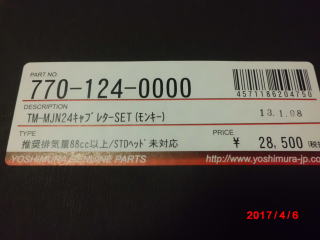特価 新品パーツ モンキー用 YOSHIMURA キャブセット TM-MJN24キャブレターSET 品番 770-124-0000 価格 24,225円(税抜) 26,163円 (税込) *定価 28,500円(税抜) 30,780円(税込) 限定1個 15%OFF http://shop.yoshimura-jp.com/syouhin/syousai.php?id=1095 2017年4月16日Up |