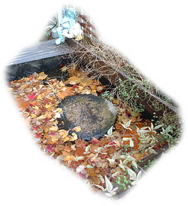 2001年12月2日。 池にカメたちの冬眠用の落ち葉を入れました。 自動車の排気ガスの影響をあまり受けていない落葉をと思い郊外の緑地公園へ。 スーパーの袋3枚分の量を詰め込んできました。思ったよりもかなりの量になりました。 カメたちのおふとんと池自体のカバー代わり。 彩りがきれいでしょ。 |