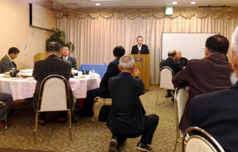 新春懇親会 橋本分会長挨拶 クリックするとテーブルごとの写真が見られます。