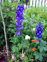 デルフィニューム& カカリア( オレンジ色)& シラカバ ジャクモンティ |