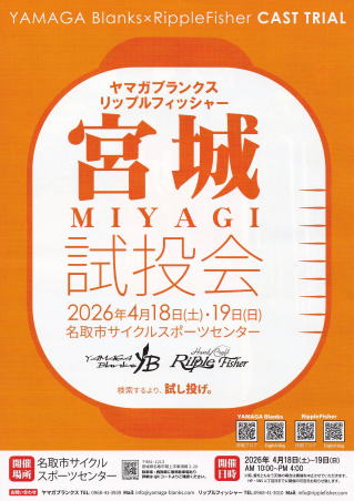 ![]() ヤマガブランクスとリップルフィッシャーの試投会がおこなわれる事になりました。 4/18と4/19に名取市サイクルスポーツセンターでおこなわれますのでお気軽に御参加ください。 |
